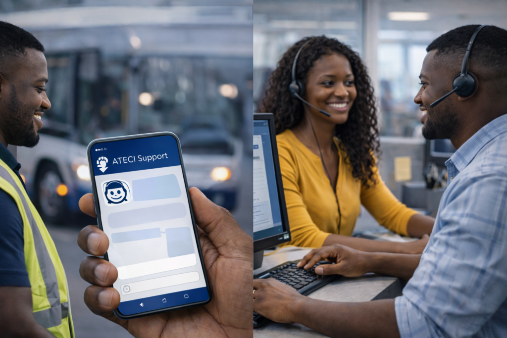 Si la réponse ne satisfait pas l’utilisateur ou si la demande est complexe, ATECI Support redirige vers un agent humain (ticket, chat, email ou téléphone).